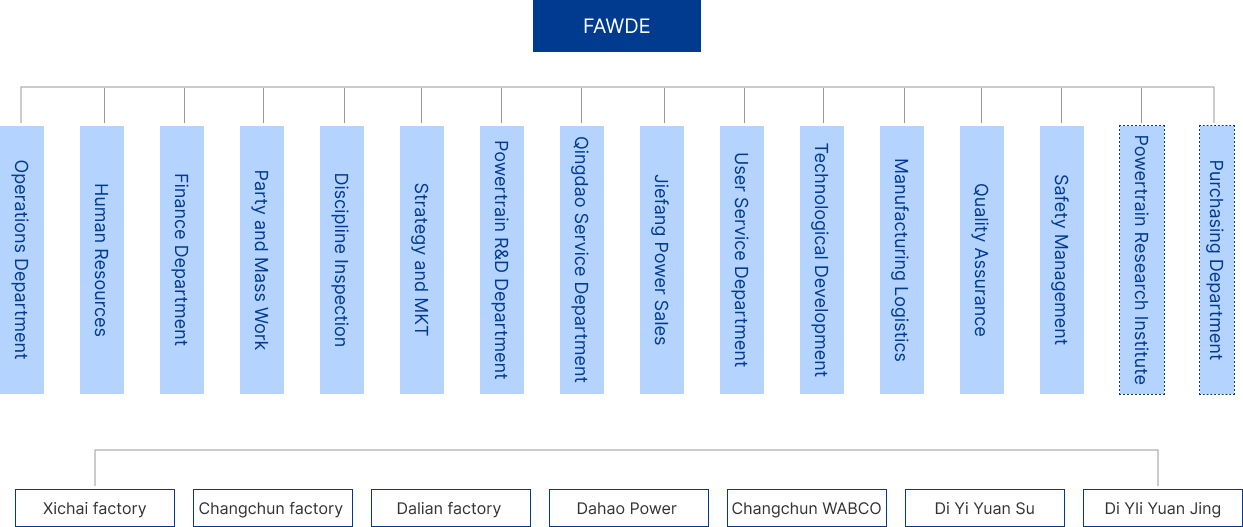 FAW Powertrain Business Division(FAWDE) is the important unit of FAW commercial vehicle business,the base of engine, transmission, axle research, manufacture and sale.